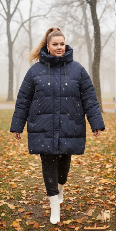 Зимняя куртка длинная больших размеров с капюшоном станет вашим идеальным выбором для холодных дней. Она подойдет, как для прогулки так и для похода на природу.