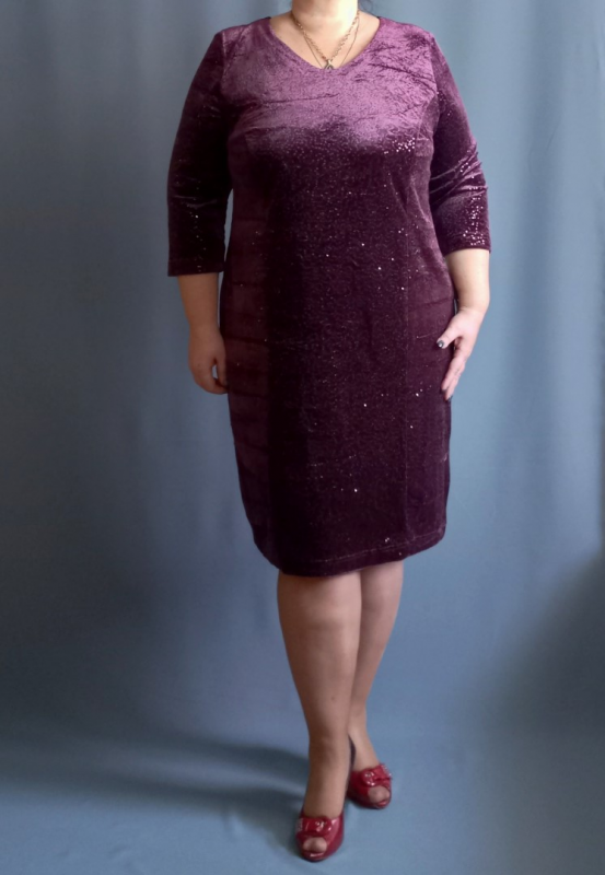 Элегантное платье выполнено из мягкого, эластичного, с лицевой стороны бархатистого полотна расшитого пайетками.