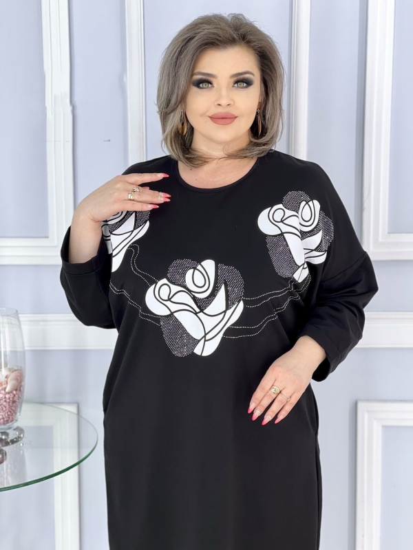 СТильное платье-туника выполнено из плотного, гладкого трикотажа. УМерено эластичный, хорошо скрывает шероховатости фигуры.