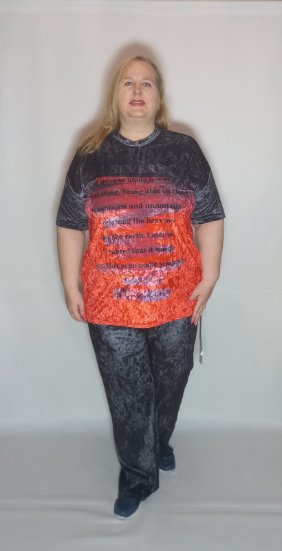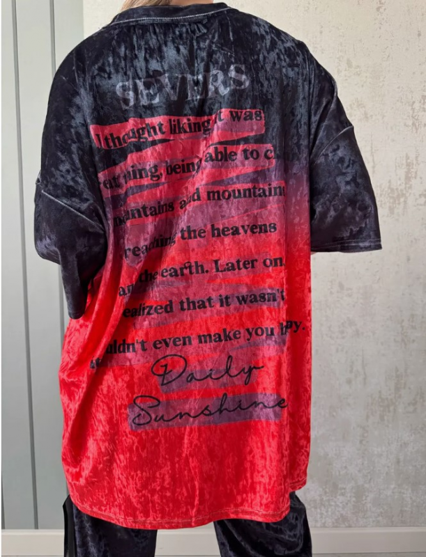 Шикарная  туника- футболка выполнена из мягкого, очень эластичного мраморного велюра с рисунком амбре и  тканным принтом.
